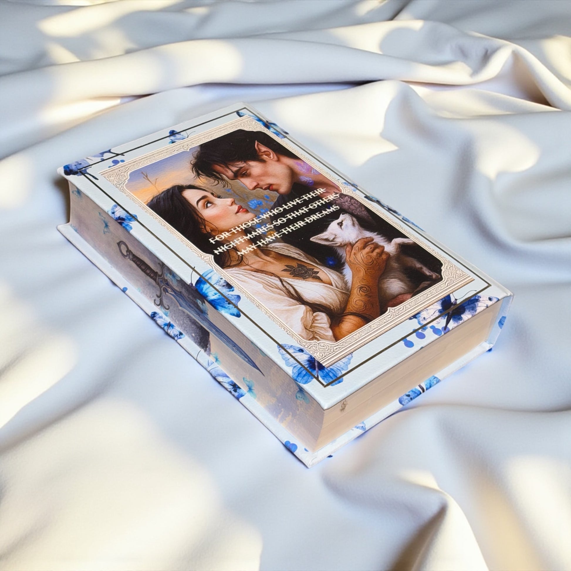 💙 Handbound in light blue butterfly-embossed leather book cloth — soft, luminous, and full of character, inspired by the story’s blend of strength and grace